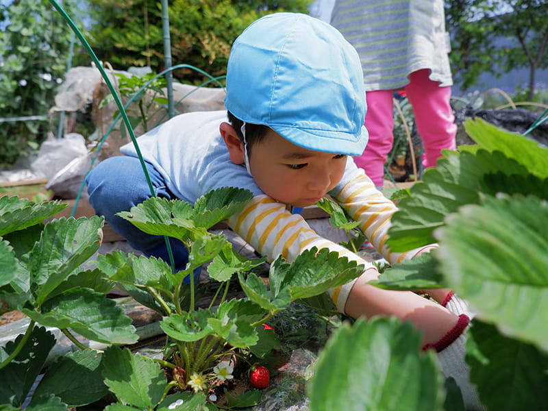 一から様々な野菜や果物、お花を育てます。生命の不思議や自分の口に入る野菜の育ち方など食育の観点だけでなく様々な学びを得ることができます。